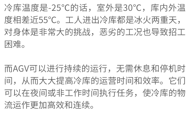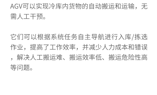 低温冷库项目的落地,彰显了AGV在低温环境中运行的潜力。这既是科尔摩根与嘉腾精诚合作下的有益尝试,也为AGV如何克服极端环境的平稳运行提供了样例参考,相信随着冷链基础设施政策的引导和企业布局完善,未来将会有更多的AGV出现在冷库物流的场景中。