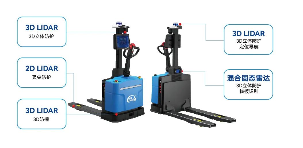 针对目前市面上无人叉车存在的安全隐患,镭神智能多线激光雷达3D SLAM无人叉车配置了多款自研自产的高性能激光雷达,为无人叉车提供了全方位的立体感知,充分保障了极致安全作业。