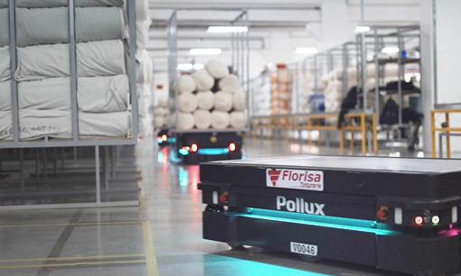 例如纺织企业 Florisa 便部署了五台 MiR1000,大幅提高了工厂生产率和安全性,并解决了存储难题。从前,将 90 吨织物运输到生产现场的任务每天由人工驾驶的叉车完成。部署了 MiR AMR 后,单日运输量至多可达 200 吨,运输能力提高了 122%。