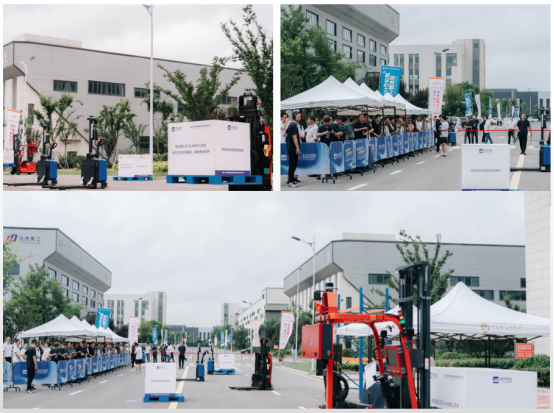 镭神智能在会场外及临时厂区部署了4台无人叉车进行室外协同作业演示,车型包括轻量搬运式无人叉车、室外/室内平衡重式无人叉车以及窄通道堆垛式无人叉车,充分展示了镭神智能激光雷达3D SLAM无人叉车高效部署、室内外场景高适用性以及多机协同调度能力,吸引了全体客户的长时间驻足观看。