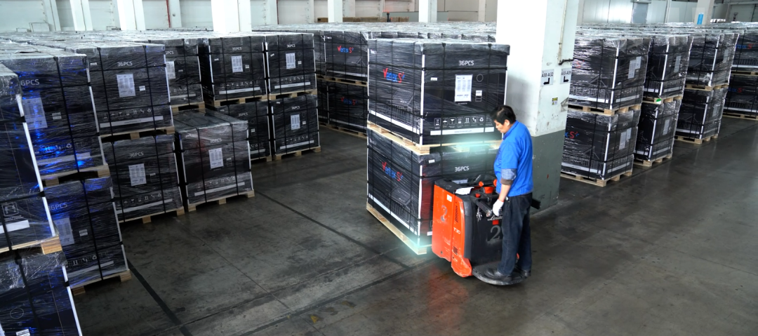 位于天合堆放组件的原料仓内,货品长且易碎,为更适配天合光能货品尺寸,快速完成物流周转作业。林德通过定制化产品方案有效解决客户痛点,针对3吨林德电动托盘搬运车定制2400mm加长版货叉,一次可叉取2托货物,大大提高作业效率,在保障货品安全性的同时让搬运更高效省力。