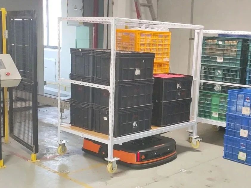 •多台牵引式移动机器人牵引料车完成物料跨厂区远距离搬运