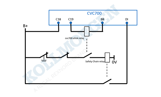 安全回路继电器的一对干接点,需接入CVC700的DI中。这样可以确保当安全回路动作时,CVC700第一时间知晓当前处于急停触发状态,进而停止使能并抱闸,形成冗余保护。