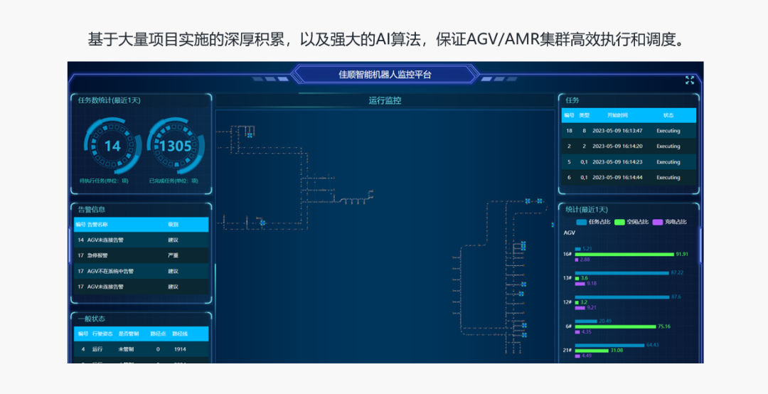 佳顺智能机器人主要解决了电池片生产车间电池片在各个流程中的转运,并可搭载各种传感器和摄像头,实时监测生产过程中的数据。这些数据可以用于优化生产流程、预测设备维护需求以及进行生产效率分析。