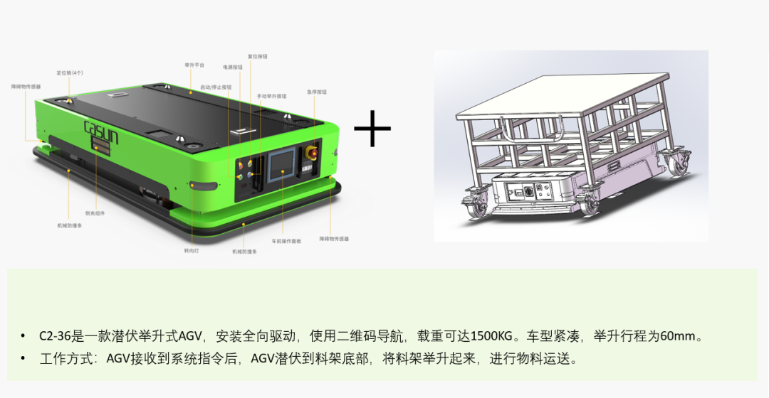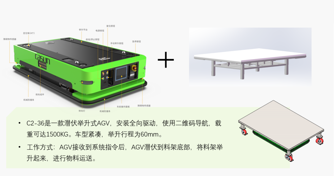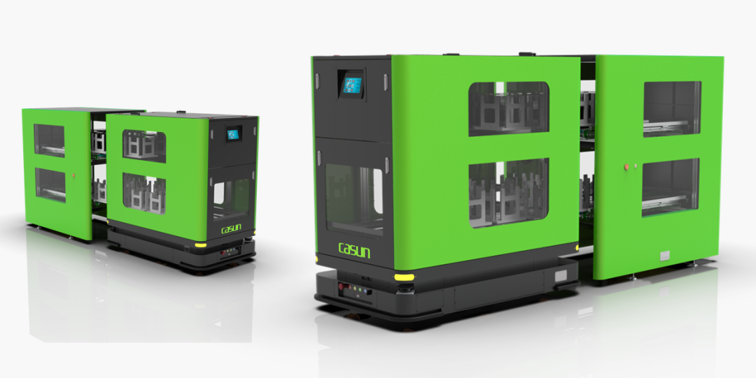 佳顺智能机器人主要解决了配件及组件的高频次搬运作业,优化生产流程,减少能源和材料的浪费。此外,光伏制造是可再生能源领域,移动机器人的应用有助于减少化石燃料的使用,从而降低环境影响。从原料车间,通过机器手或人工装箱后,通过移动机器人搬运料框到组件生产车间。