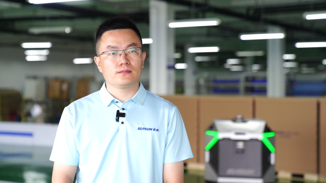 ▲新松点石科技有限公司副总经理毛明旭介绍此次星卫来工业清洁机器人交付情况