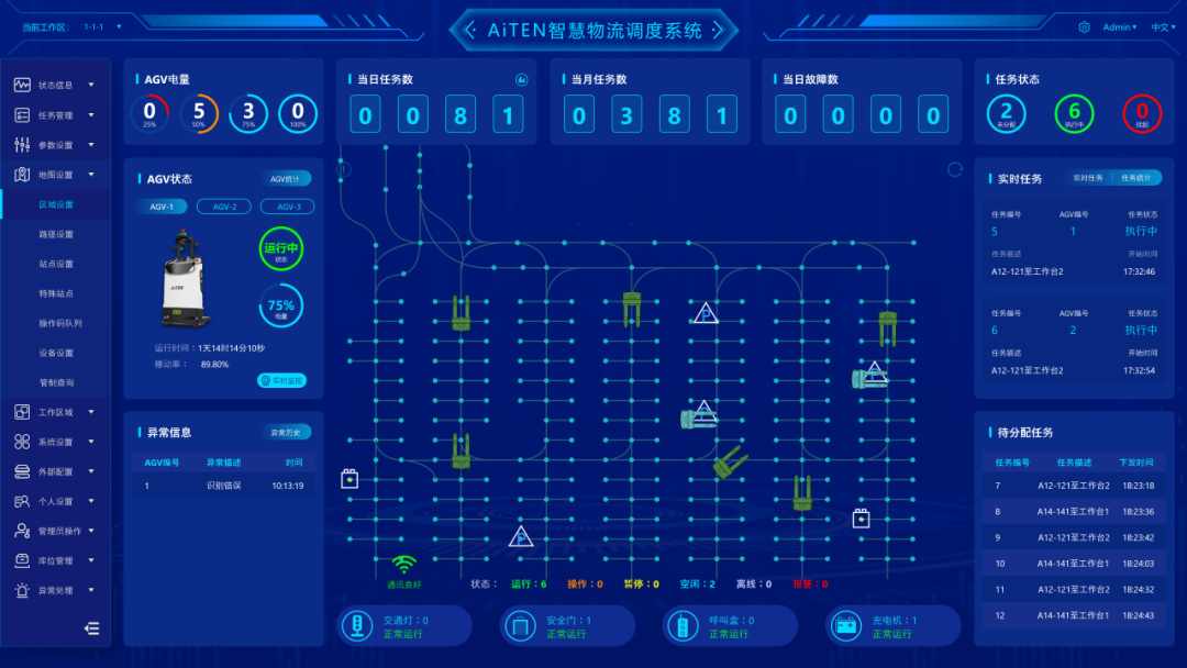 01、客户同时有搬运和堆垛两种车型的需求,在不同物流运输阶段需要不同的车型,多车型混合调度是一个难点,海豚之星分布式调度系统很好的解决了多车型混合调度。