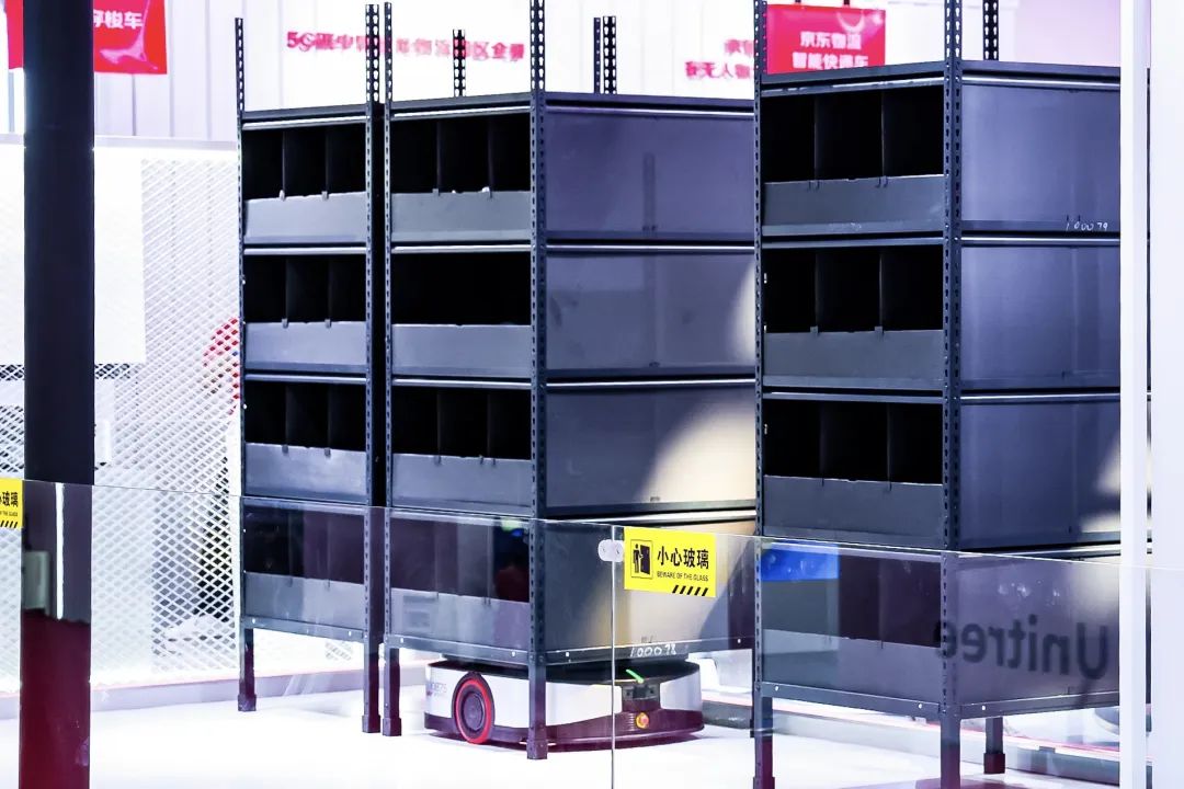 今年京东物流展台重点展示了四款机器人,分别是天狼穿梭车、地狼机器人、智能快递车和室内配送机器人。这些均是近年来京东物流打造的明星产品,吸引了众多参会观众驻足围观。