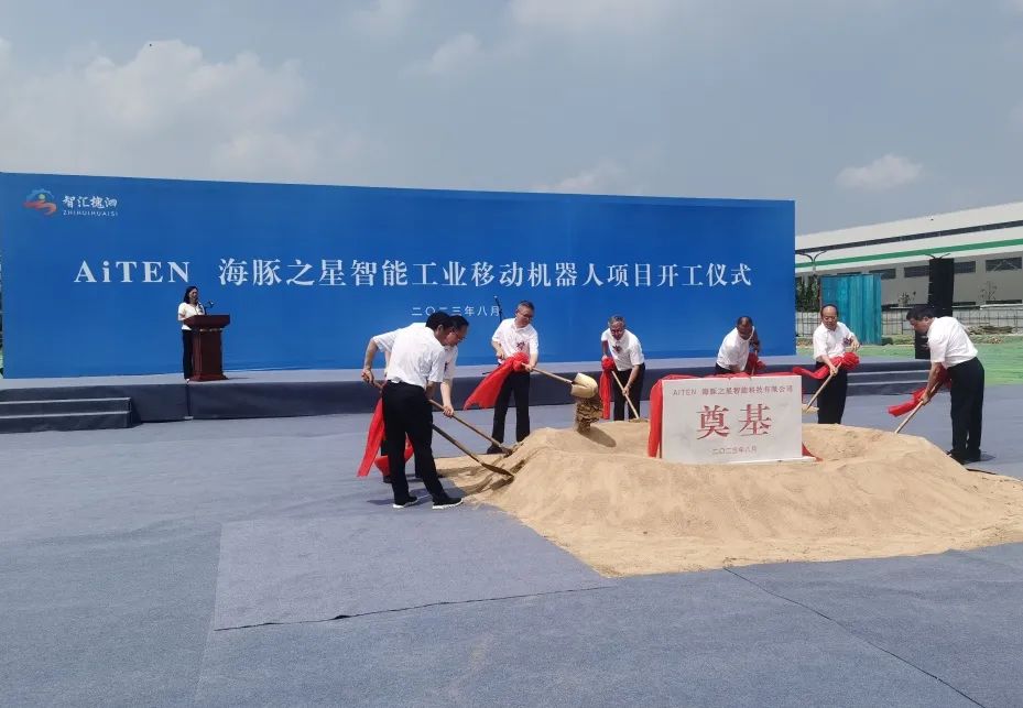 海豚之星工业移动机器人项目奠基仪式今日在扬州举行,邗江区区委领导班子、海豚之星CEO、海豚之星管理层等领导出席现场典礼。