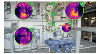 ANYmal X 在多个楼层执行多次检查任务,每次任务 20 分钟,包括 20 个检查点。ANYmal X 目视检查液位、仪表上显示的值以及控制杆的位置。对钢罐和泵进行热检查。泵的功能也通过频率记录进行监控。在石脑油加工炉中,ANYmal X 通过热成像检查炉壁和涂层,以提供潜在异常情况的早期迹象。