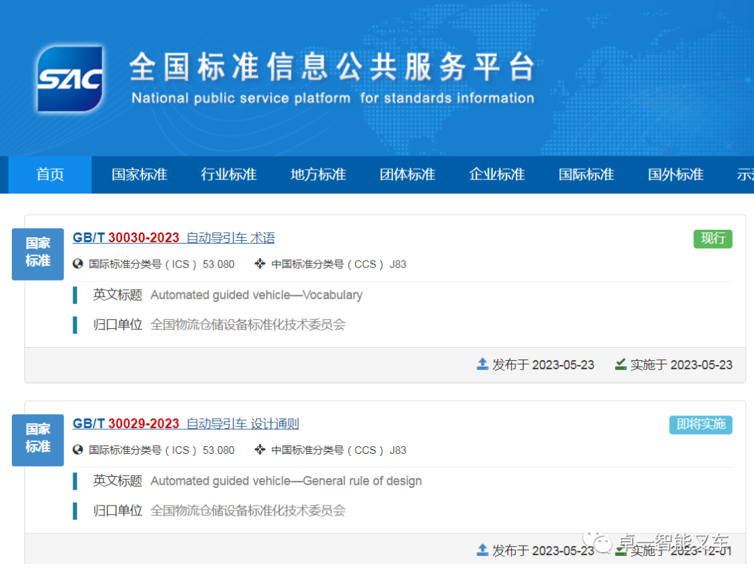 上述两项有关自动导引车的国家标准已于2023年5月23日正式发布,将进一步指导和规范自动导引车的产品开发、设计、生产制造及应用,引导相关企业有序发展,有助于提升我国自动导引车行业的技术能力和市场竞争力。