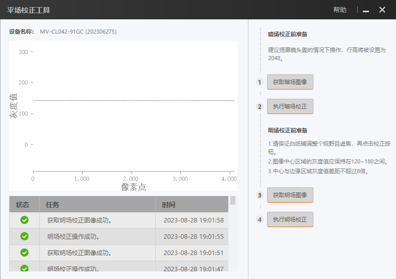 在线阵相机的平场校正操作中提供更直观的操作指导。