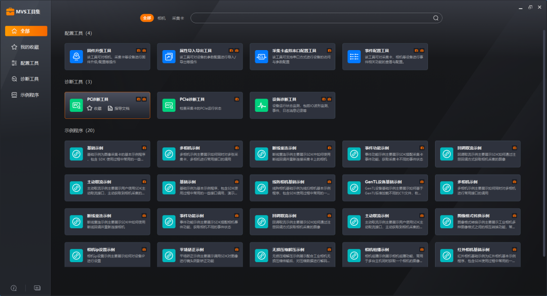 全新推出的MVS工具集软件提供多达7种常见工具和20种示例程序的合集,方便用户快速查找。