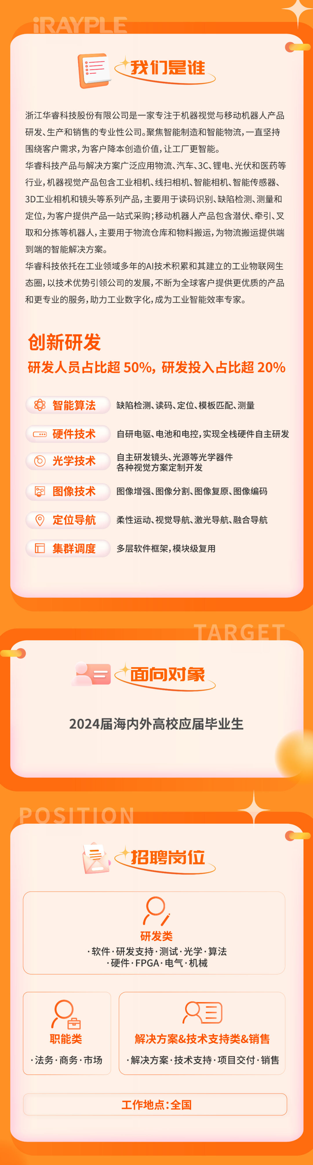 浙江华睿科技股份有限公司(以下简称:华睿科技),是一家专注于机器视觉与移动机器人产品研发、生产和销售的专业性公司。聚焦智能制造和智能物流,一直坚持围绕客户需求,为客户降本创造价值,让工厂更智能。