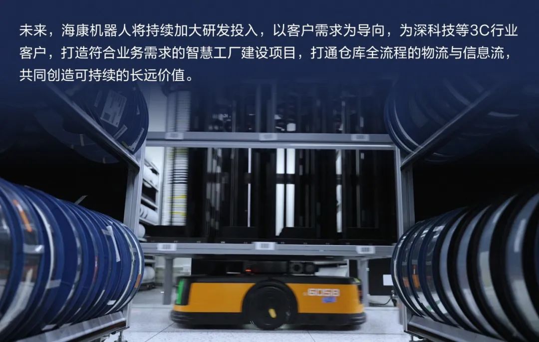 这座电子产品智慧工厂由海康机器人和深科技联手打造。通过部署智能仓储及厂内物流解决方案,助力客户落实智能仓储以及智慧物流领域的前瞻性布局,在面对智能手机飞速更迭时能够快速调整生产策略,按工单完成原材料的高效拣选,并及时配送至指定产线,实现企业自动化升级与降本增效的双赢结果。