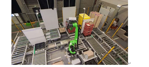 在 Lidl,供应商 Premium Robotics 的机器人系统现在正在码垛。