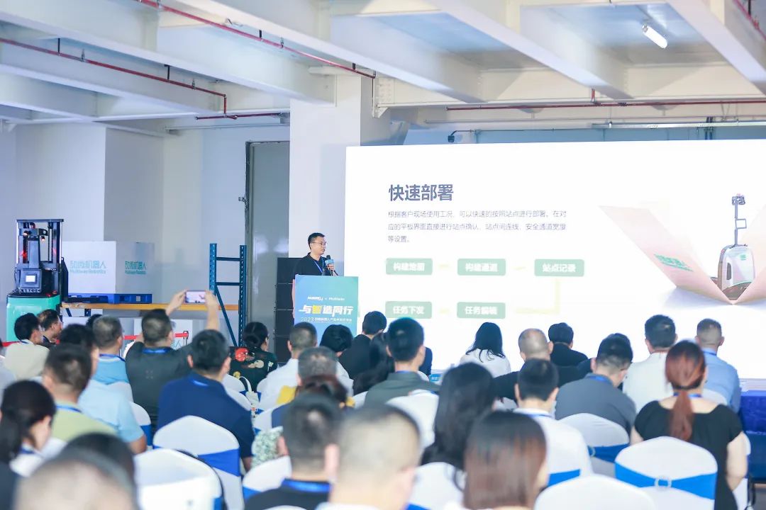 在产品应用场景介绍和无人叉车案例讲解完毕后,劢微机器人与美能实业团队聚焦生产各环节机器人应用,与学者专家、终端客户开展面对面、深层次技术交流,并引导嘉宾亲身体验「劢小微X1」的高效便捷,充分展现产品在标准化、创新性和智能化等层面优势。