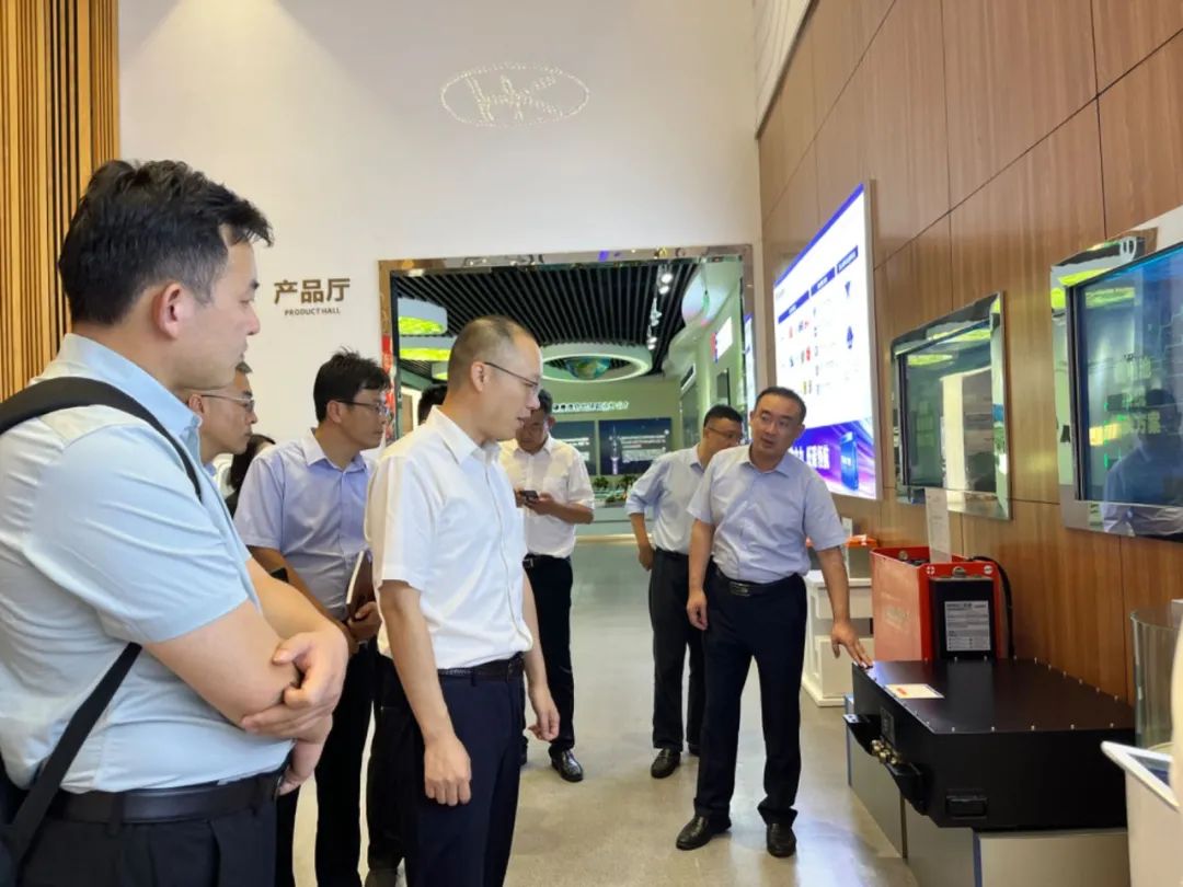 吴名陵一行参观了天能文化展厅,了解天能发展历程,以及铅电、锂电、氢电、钠电等主导产品的发展情况,同时也前往工业锂电PACK车间进行了实地考察,详细了解企业生产规模、技术研发、项目建设等情况。