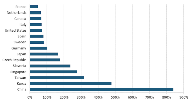 在机器人的采用方面,中国似乎是独一无二的,其国家和省级政府投入了大量资金来补贴机器人和其他自动化技术的采用。
