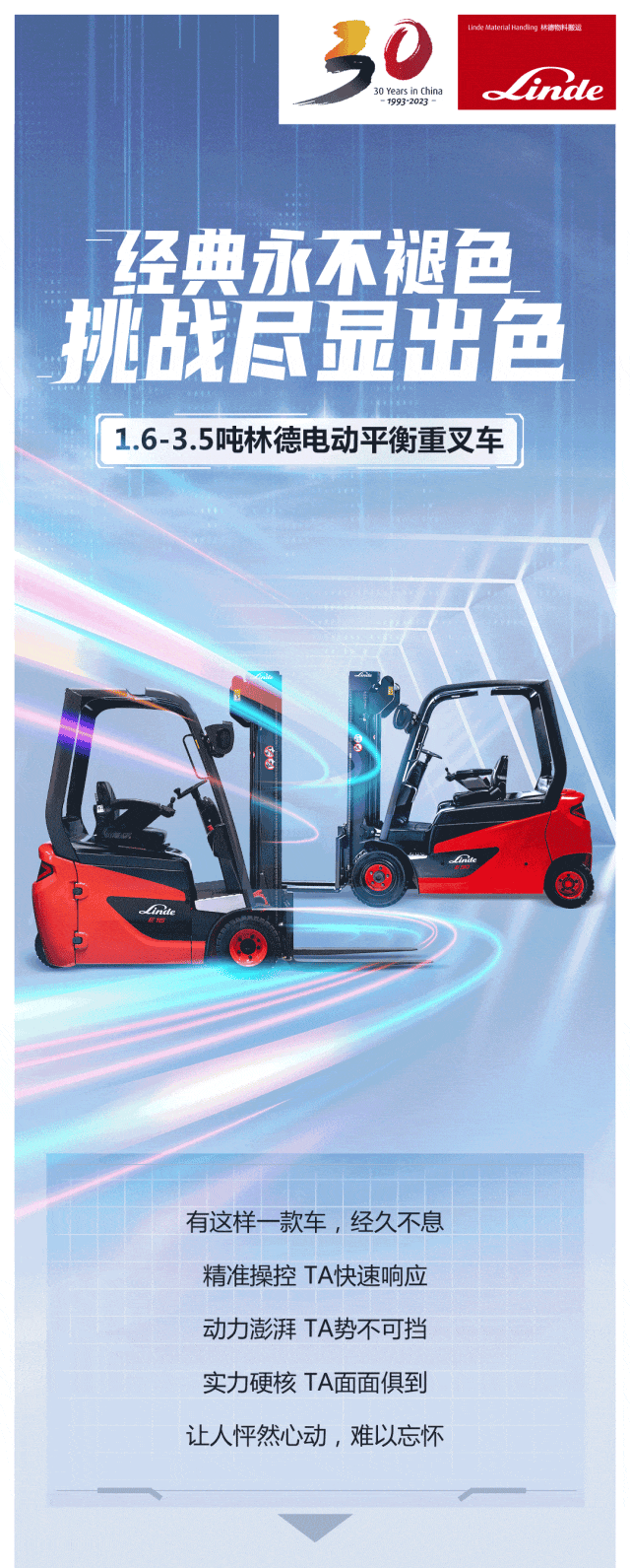 “高效源于魅力科技”–林德(中国)叉车有限公司,1993年成立于厦门,是林德物料搬运在亚洲的生产,销售、服务及技术研发基地,现有5,000多名员工,销售服务网络覆盖全国260个点。