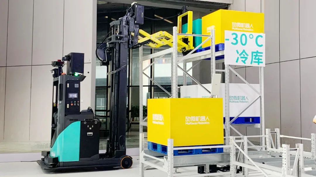 劢微机器人还展示了冷库版前移式无人叉车MW-R16H,可在冷库-30℃至45℃极端环境下进行高位货架存取,并通过双深位作业,提升30%以上仓储库容率。业界首创单次两托“劢微α2”采用“双托盘+双升降”结构,集前移式、托盘式、堆高式无人叉车优势于一体,可以从容应对各类复杂场景,保证长时间高效稳定运行。