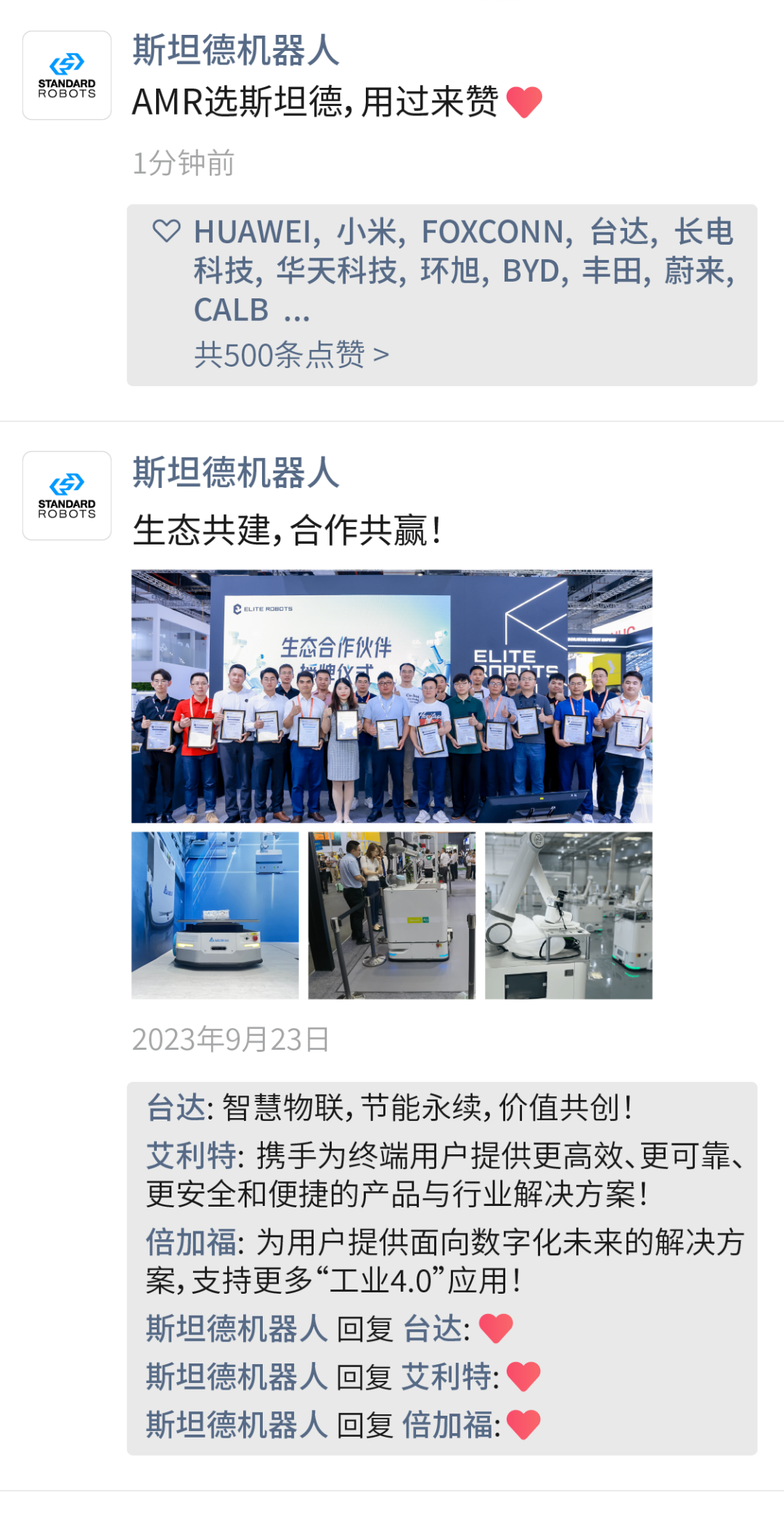 斯坦德机器人(Standard Robots)致力于为优秀的系统集成商及终端制造工厂寻找标准化、可复制的算法应用场景,实现其柔性化、敏捷化的厂内物流需求,为客户践行轻资产、回报快的初期物流投入,为行业构建信息化、数据化的物流基础设施,是全球真正践行把激光导航AGV应用于华为、中兴、富士康等实际工业物流领域的高科技企业。