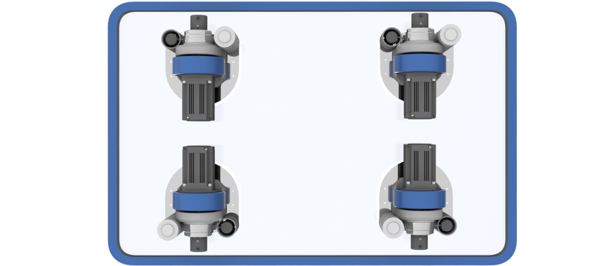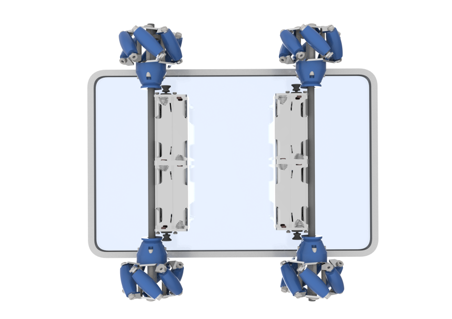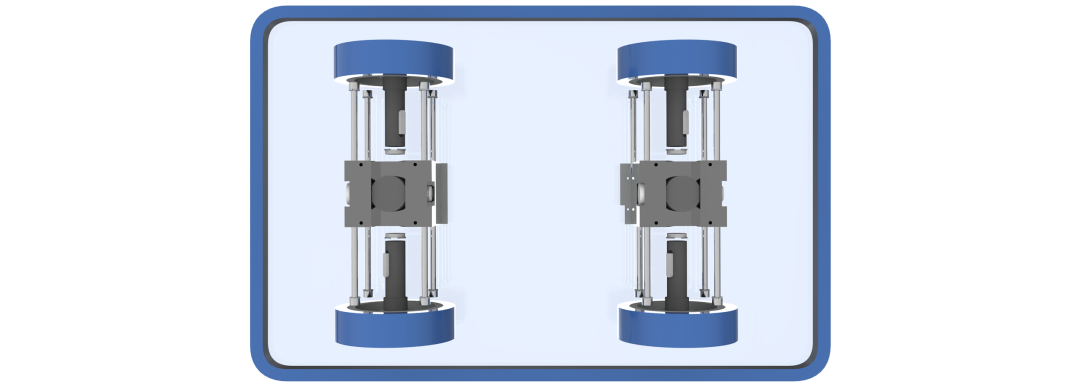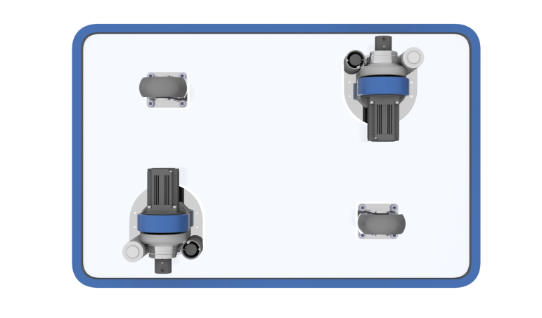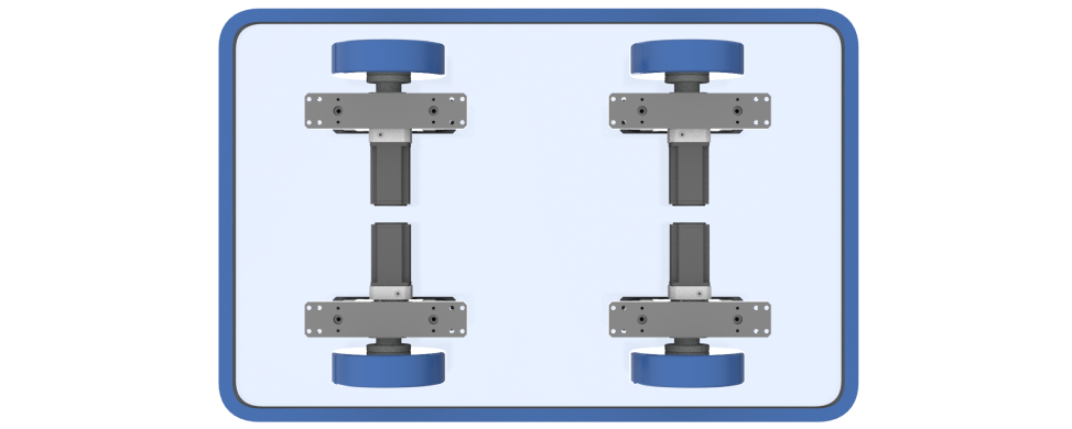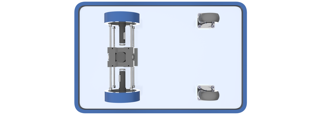双舵轮底盘结构是目前市场上最常见的结构之一,其底盘由两个驱动轮和一个或多个非驱动轮组成,通常应用于中等载重的AGV上。双舵轮底盘结构设计可以实现360°回转功能,也可以实现万向横移,灵活性高且具有精确的运行精度,因此在市场上得到了广泛应用。
