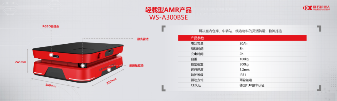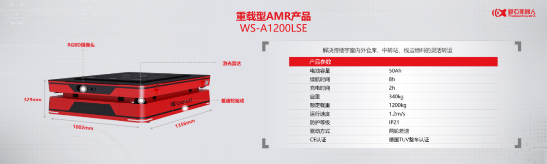此次发布会共发布第五代多模态柔性WS-A300BSE(轻载型)和WS-A1200LSE(重载型)两款AMR自主移动机器人底盘,其专为多场景搬运应用设计。通过稳石机器人独家自研的异步定位融合算法、多种传感器的综合应用、能够高精度高稳定性的输出定位信息。强越障和间隙能力,适应室内外不同地面环境,抗室内外强弱光线环境干扰,可赋能企业更多搬运场景。