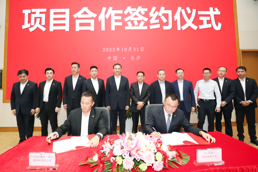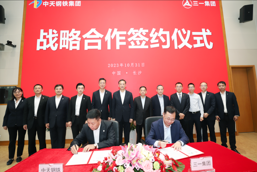 另外,三一集团有限公司与中天钢铁集团有限公司签署战略合作协议,双方就智能制造、风光储电氢等新能源、供应链生态等领域深入合作并达成高度共识。