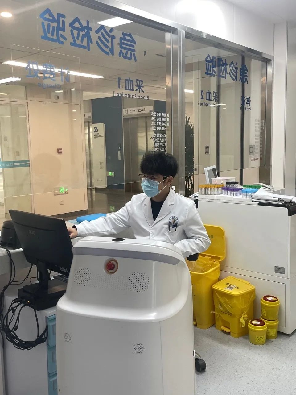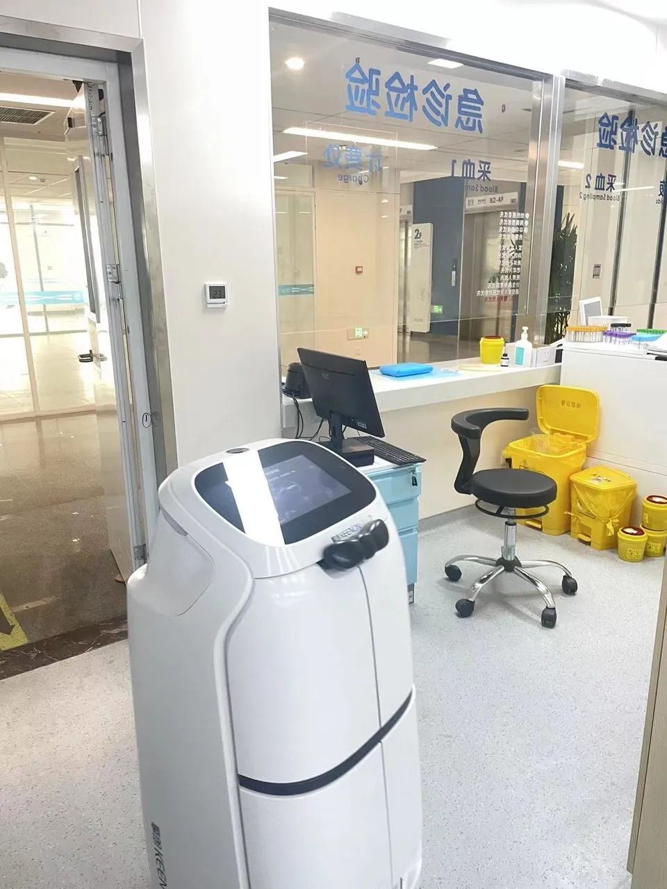检验科工作人员表示:“机器人自上岗以来,承担了科室大量的样本配送工作,不仅让标本运输工作更高效,标本运送过程也很安全 ,擎朗医疗机器人现在已经成为我们离不开的工作好搭档。”