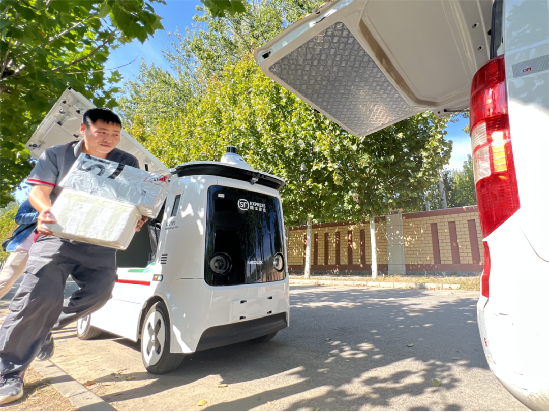 “原来,我们是轮班去营业点取货,有时候都忙不过来,现在无人配送车就帮我们把货送来了,正好解决了人手不足的问题。”顺丰快递员说。今年9月初,新石器无人配送车开始在顺义运营,目前已投入8辆,服务4个快递网点的接驳,共配送快递8万余件。无人车和快递员的人车接驳模式,使快递员的派送效率提升了2至3倍。