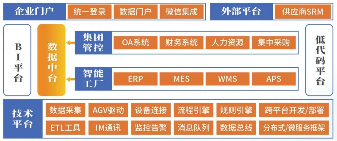 提供基础门户、数据中台实现异构系统集成和数据集成