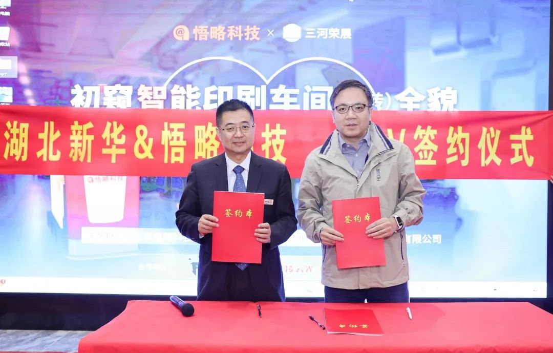悟略科技总经理陈俊江与湖北新华总经理周刚签署协议