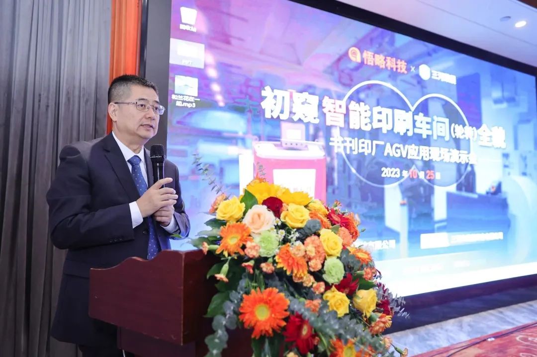 会上,悟略科技隆重发布了书刊印刷行业首个“智能化印刷车间(轮转)解决方案”。该解决方案融合了数据采集、基于数采自动报工、卷筒纸AGV自动送纸、托盘AGV自动取料以及初步的数字孪生等内容,目前已在荣展印务实现落地应用。