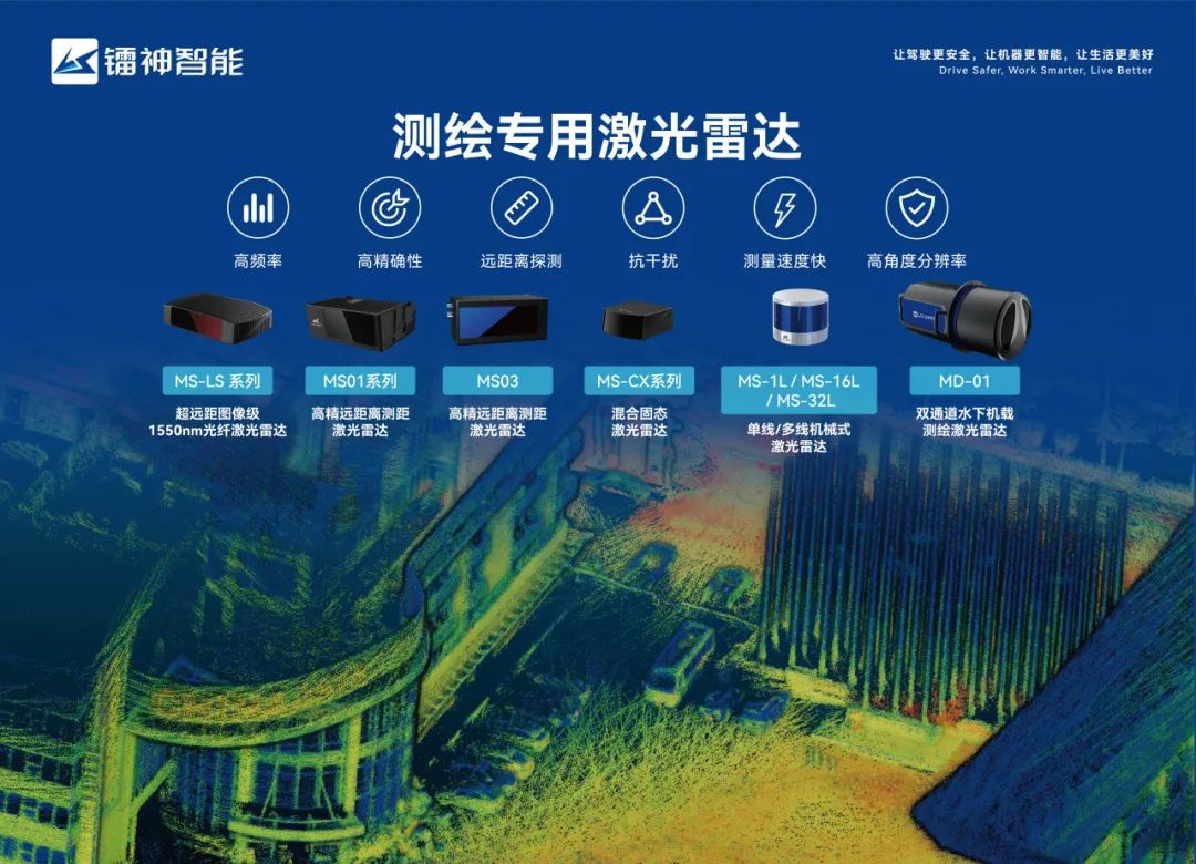 镭神智能携超远距离图像级1550nm光纤测绘激光雷达、高精远距离测距测绘激光雷达、混合固态测绘激光雷达、多线机械式测绘激光雷达、双通道水下机载测绘激光雷达,无人机3D实时建模系统和手持式3D激光雷达SLAM建模系统重磅亮相首届中国测绘地理信息大会,凭借卓越的测绘激光雷达产品和领先的创新技术,吸引了众多行业专家和国内外客户的关注。