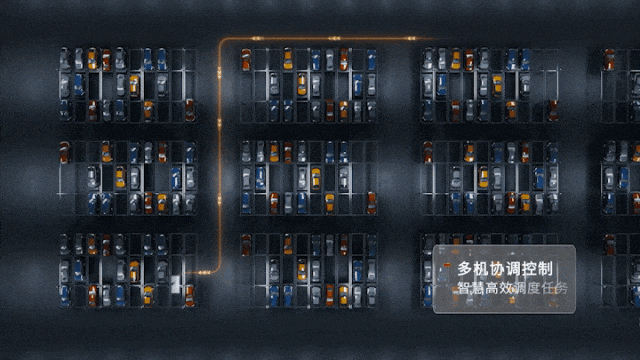 开发AI群控调度管理系统,可同时管理多台AGV停车机器人协作运行,实现停车系统的柔性化运行,平均存取车时间小于120秒。