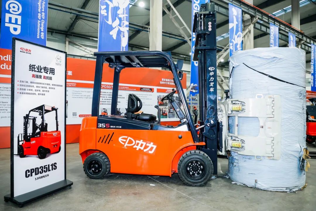 纸业专区,中力叉车配置专属纸卷圆抱夹、平抱夹等属具,轻松搬运大型纸卷等货物;强壮护顶架设计,起升过载保护等,让作业更安全;