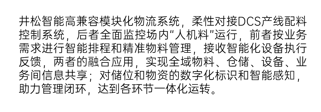 从智能仓储打造到精益化流程梳理,再到集约化系统管理的链通,井松智能基于整套智造方案的规范化操作,帮助客户达成资源集约化、仓储智能化、信息透明化的绿色战略目标。