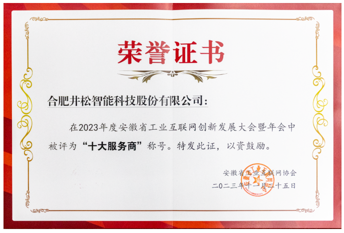 11月25日,由安徽省工业互联网协会主办的2023年度安徽省工业互联网创新发展大会在合肥举行,安徽省委常委、副省长张红文,安徽省政协常委、经济委员会主任、省工业互联网协会会长牛弩韬等省、市政府领导,及协会会员单位代表、专家学者出席大会。井松智能凭借在工业互联网领域出色的综合实力,获评2023年度安徽省工业互联网“十大服务商”。