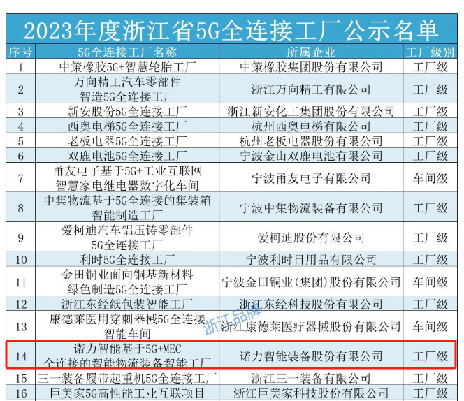 浙江省5G全连接工厂名单