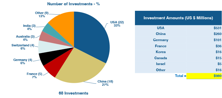 图 1:2023 年 10 月各国机器人投资