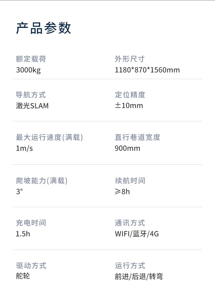UQI优奇全新推出的Wali瓦力T3000拖挂牵引机器人主要应用于轮式料车的厂内搬运工作,采用隐藏式后牵引钩设计,外观简洁时尚,其最大牵引重量可达3000kg,满载运行速度可达1m/s。Wali瓦力T3000拖挂牵引机器人可根据场景需求选配单线或多线激光雷达导航,配备双避障雷达和RGBD相机等多重安全防护。通过UPilot机器人操作系统的调度指令,Wali瓦力T3000拖挂牵引机器人可实现自动脱挂钩功能,并进行故障自检及自主充电,在无人工干预的情况下实现7x24小时全天候运行。