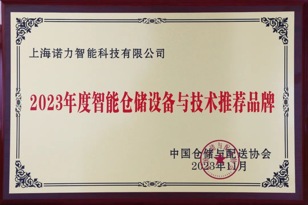 会议同期,举行了“星级仓库”“绿色仓库”“仓储服务金牌企业”等标准化评价企业与仓配领域各类创新型企业与创新型设施技术企业的授牌仪式。上海诺力智能科技有限公司受邀参加此次大会,并荣获“2023年度智能仓储设备与技术推荐品牌”。