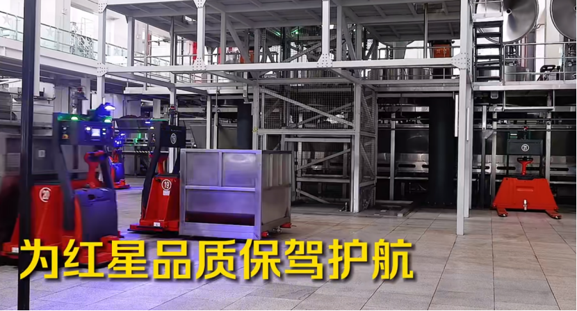 在红星二锅头酿造基地,有着一群与众不同的的“酿造工”:身披钢铁战衣,眼着多种“射线”,自由穿梭在酿造车间,它们就是机科股份的无人转运车AGV。