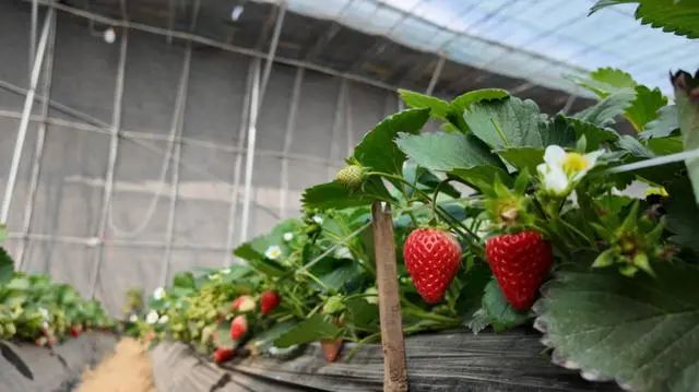 “这个大棚约2900平方米,我们不仅安装了8台水暖空调,更为草莓铺设了地暖。”王凌志指着条条管道说,地暖埋入草莓的基质中,确保其不受冻害。“当监测设备一旦感知到棚内气温低于10℃,空调、地暖会自动开启;当温度达到15℃时自动关闭,基本做到全程无人化。”王凌志补充说。