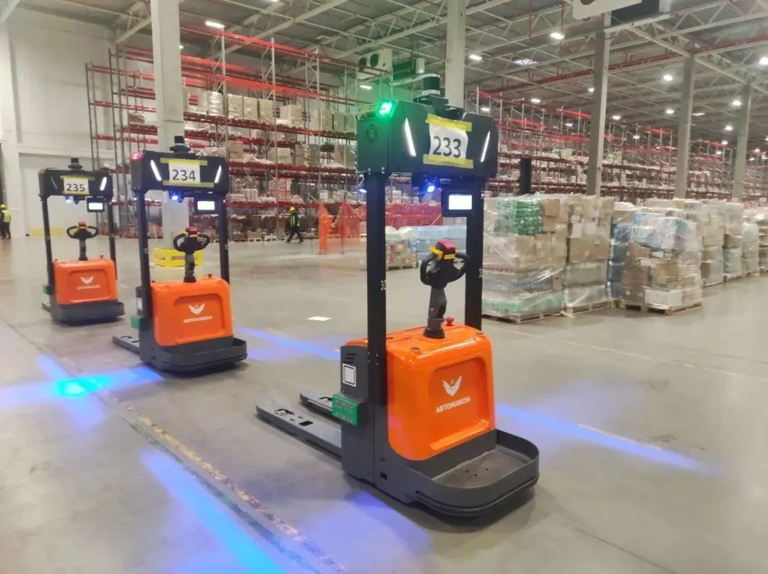 此次批量交付的产品,是木蚁智能叉车系列中托盘平面搬运机器人,最大行驶速度2.6m/s,额定负载2000kg,导航精度(直道/弯道)±30mm/±50mm,,实现了“高速、高负载、高精度”三者并联。新增的混合固态激光雷达搭配改制的窄叉臂用于识别叉取 0.8m 的欧标托盘。车端传感器与轻量化AI平台搭配,实现自动取货、运货、放货及库位管理。6