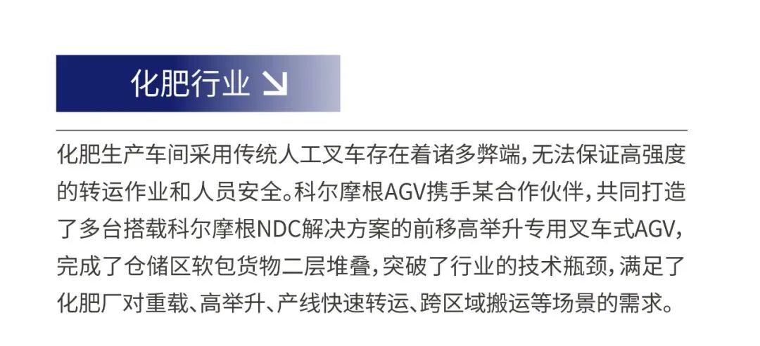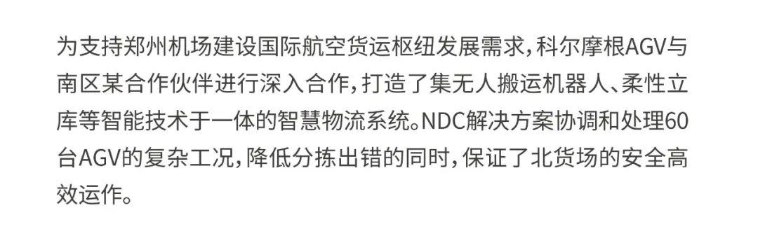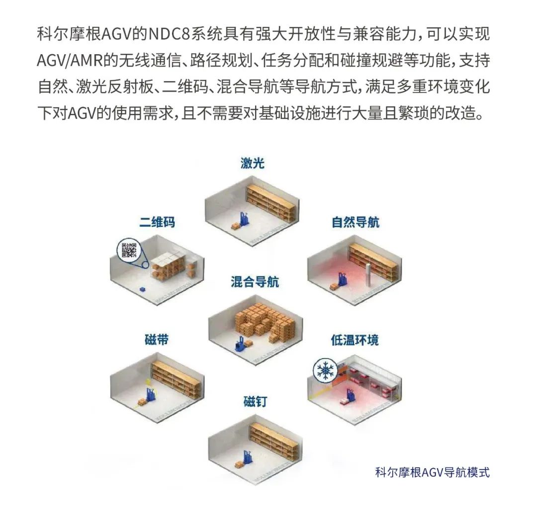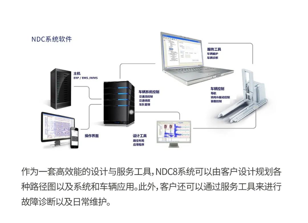 科尔摩根AGV的解决方案由:系统、车辆、软件工具和服务组成。其中NDC平台不仅支持目前市面上多种主流导航方式,如激光导航,自然导航,二维码导航等,还支持他们的组合导航方式。同时,NDC平台包括用于管理车队和有效引导车辆的软件,以及用于导航和控制的硬件。后期,科尔摩根AGV 定期为合作伙伴提供技术支持,培训,咨询等服务。