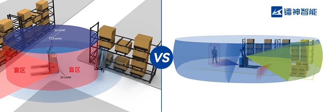 2D SLAM与3D SLAM无人叉车防护示意图