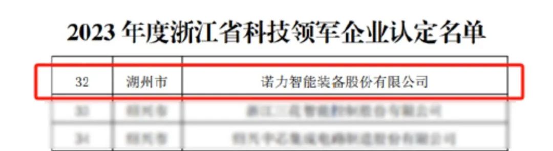诺力荣获2023年度浙江省“科技领军企业”称号