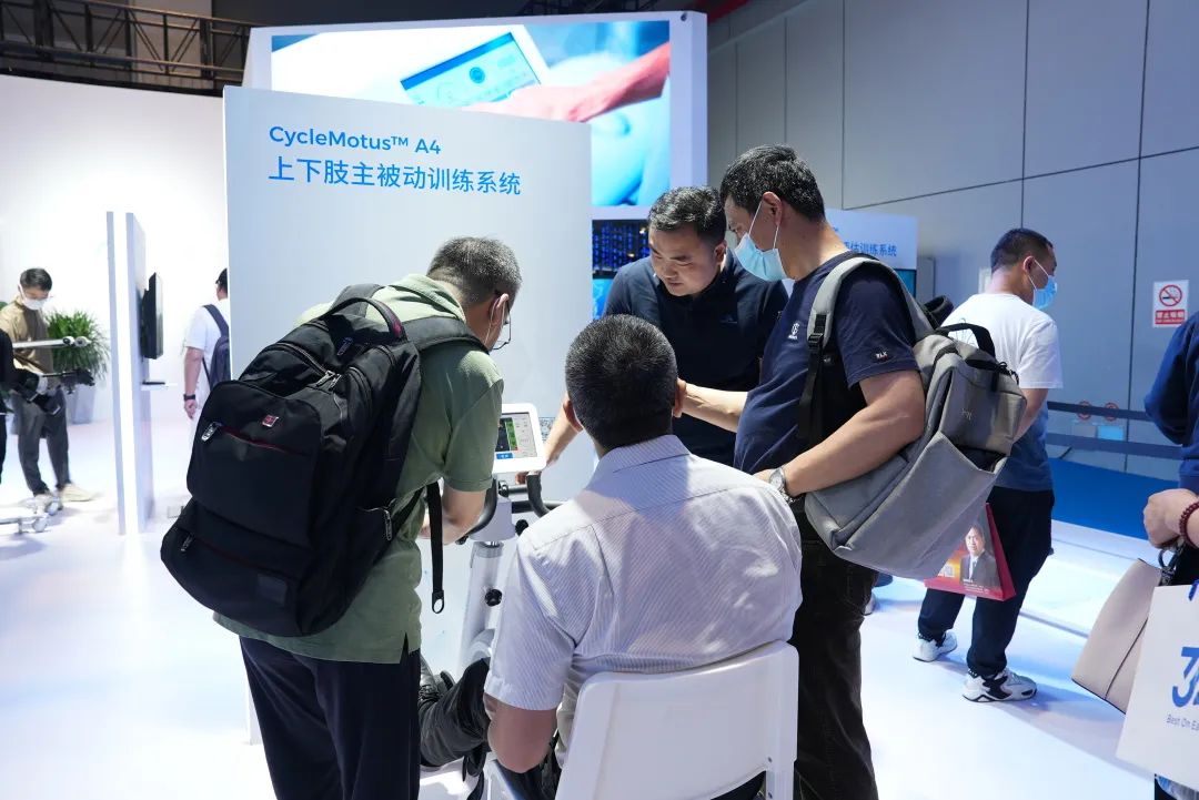 展会现场,EMU三维上肢康复机器人凭借创新工业设计和轻巧的外观,带来更轻更柔顺的康复评估及训练体验。基于自主研发的力反馈技术,EMU模拟治疗师的手法提供辅助和引导,实现三维空间内的上肢运动控制及日常生活活动等能力训练。产品曾获得红点设计大奖、iF设计大奖、Good Design日本优良设计奖等奖项,代表了中国乃至国际康复机器人技术领域的顶尖水准。